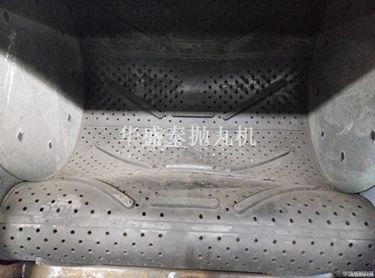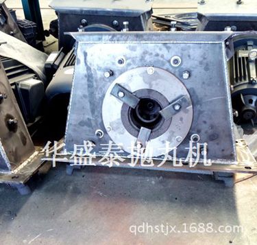 拋丸器中的雙圓盤鉚接成一體,構(gòu)成葉輪體。葉輪體上裝有八片葉片,葉輪體與位于拋丸輪中心的分丸輪一起裝在由電動機(jī)驅(qū)動的主軸上。罩內(nèi)襯有護(hù)板,罩殼上裝有定向套及進(jìn)丸管。工作時,彈丸由進(jìn)丸管流入拋丸器。跟葉片作同步旋轉(zhuǎn)的分丸輪使彈丸得到初速度。彈丸經(jīng)定向套的窗口飛出,拋到定向套外面的高速旋轉(zhuǎn)的葉片上,被葉片進(jìn)一步加速后,拋射到被清理工件的表面上。因?yàn)榉滞栎喓腿~片作同步旋轉(zhuǎn)保證了彈丸向葉片的無振動傳遞,從而減小了對葉片的磨損。