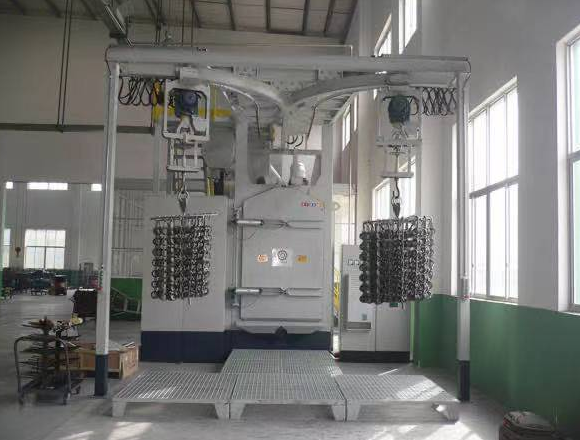 該鉤式拋丸機處理效果好,生產效率高,投資少,污染少,勞動強度低,易于實現機械化,適合大批量生產,提高工作效率。 但是,噴射方向不能任意改變,靈活性差;