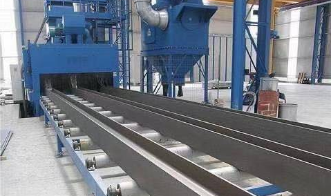 鋼結構拋丸清理機系列產品是針對型鋼和焊接鋼結構件在涂漆前完成拋丸清理達到鋼材預處理標準而設計制造的專用設備。該系列機采用輥道通過式方式設計,主要結構包括:清理室體、輥道系統、彈丸循環系統、拋丸器、尾吹系統、氣動系統、電氣系統和除塵系統。輥道承載工件經輸入輥道運至拋丸清理室,多臺拋丸器運轉加速彈丸轟擊工件表面,有效地去除工件表面銹蝕、氧化皮、焊渣,獲得一定粗糙度及表面壓應力的金屬本色表面,以提高涂漆附著力并延長鋼結構件的使用壽命,達到拋丸清理的目的。工件離開拋射區后,由刮板機構將工件上殘留的彈丸刮除,并由尾吹系統的上噴頭和側噴頭產品高速氣流,將散落的彈丸吹凈,輸出輥道將工件運出以備卸料或涂漆。隨著經濟發展和社會的進步,輕型鋼結構建筑被認為是傳統建筑建材行業中新的經濟增長點,輕鋼建筑所占市場份額正逐年大幅上升。為適應新的市場需求,針對鋼結構件的結構特點和行業需要的特點,青島機械有限公司開發研制了鋼結構拋丸機系列產品,將世界權威專業公司的拋丸機理念運用其中,在關鍵部件的設計和組合中大量引入本公司多年積累的專業設計經驗和成熟的技術優勢,為促進清理工藝取代污染落伍的酸洗除銹工藝作出了貢獻。