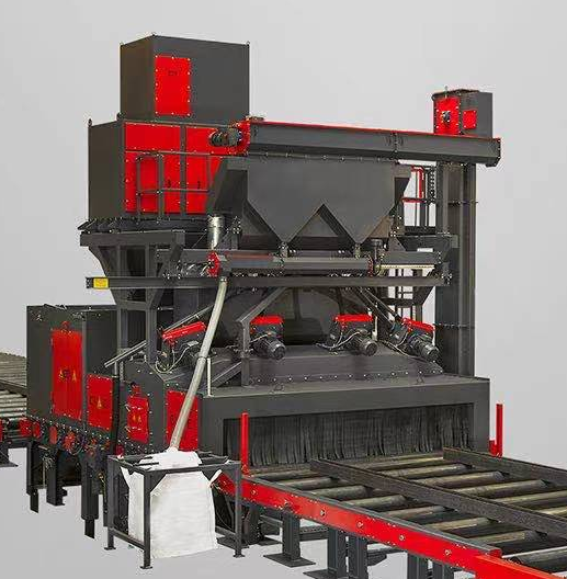 超市貨架通過式拋丸機主要用于清理貨架、貨柜、工字鋼等,拋丸機拋丸室體為雙層結構,其外部室體采用鋼板焊接而成,內層為含鉻耐磨板,采用積木式安裝結構形式,結構緊湊,密封性好,維修十分方便。